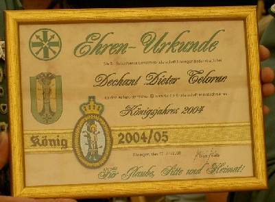 Erinnerung wurde Präses Dieter Telorac für seine Regentschaft als König das