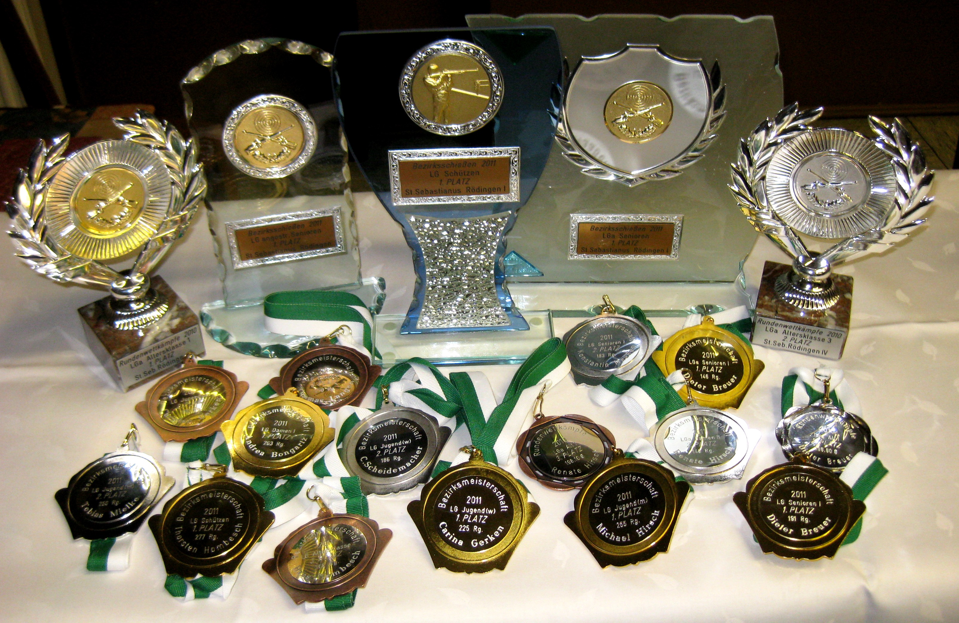 St. Sebastianus Schützenbruderschaft Rödingen e. V. war mit zahlreichen Siegern und Platzierten einer der Hauptempfänger von Plaketten und Pokalen. Sowohl in den Rundenwettkämpfen der Saison 2010/2011 als auch in der Bezirksmeisterschaft 2011 hatten viele eine Ehrung erlang: