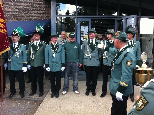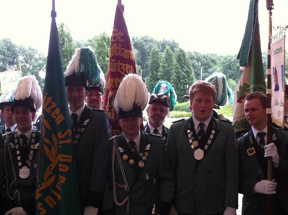 19.06.2011 Bezirks-Bundesschützenfest in Hoengen und Schützenfest in Oberembt Da am gleichen Nachmittag der Festzug des Bezirksbundesfest in Hoengen und der Festzug des befreundeten Schützenbruderschaft St. Seb. und Aloysius Oberembt stattfanden, musste sich die Bruderschaft aufteilen.