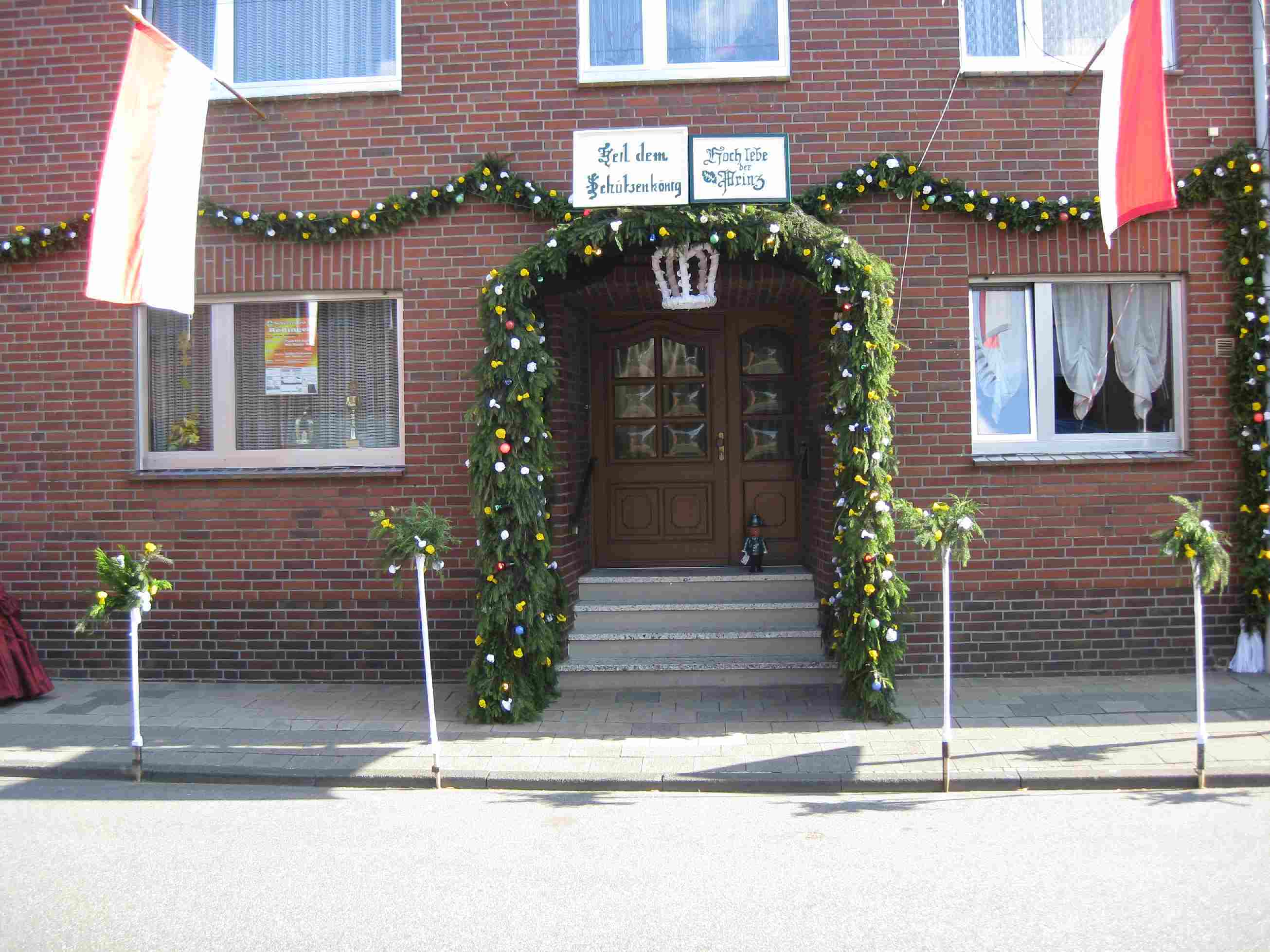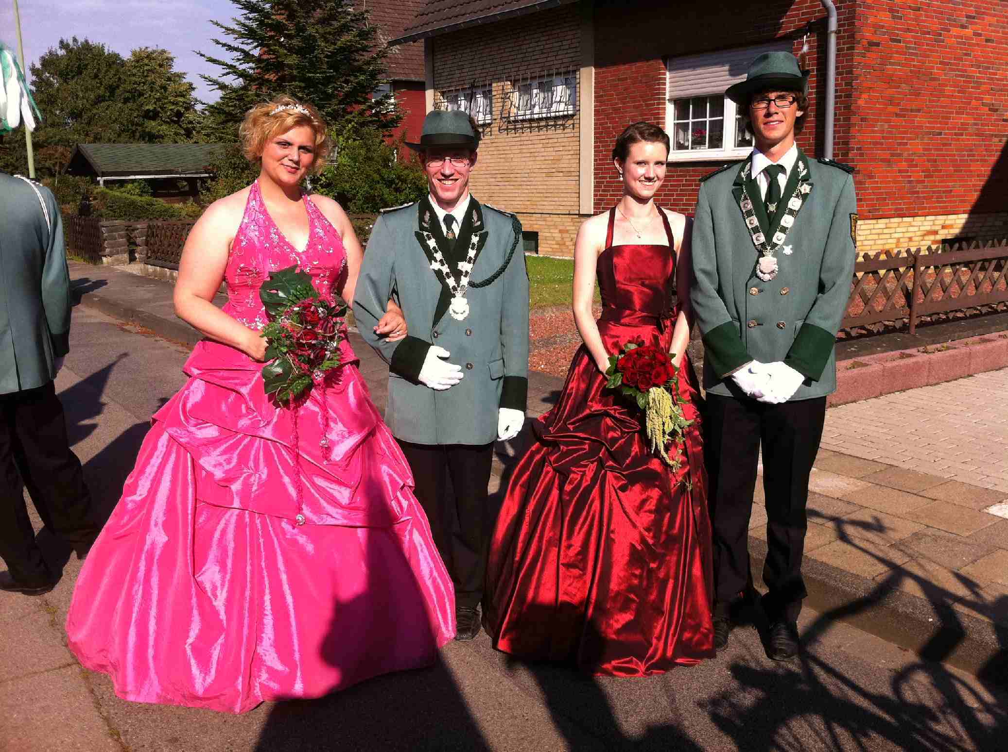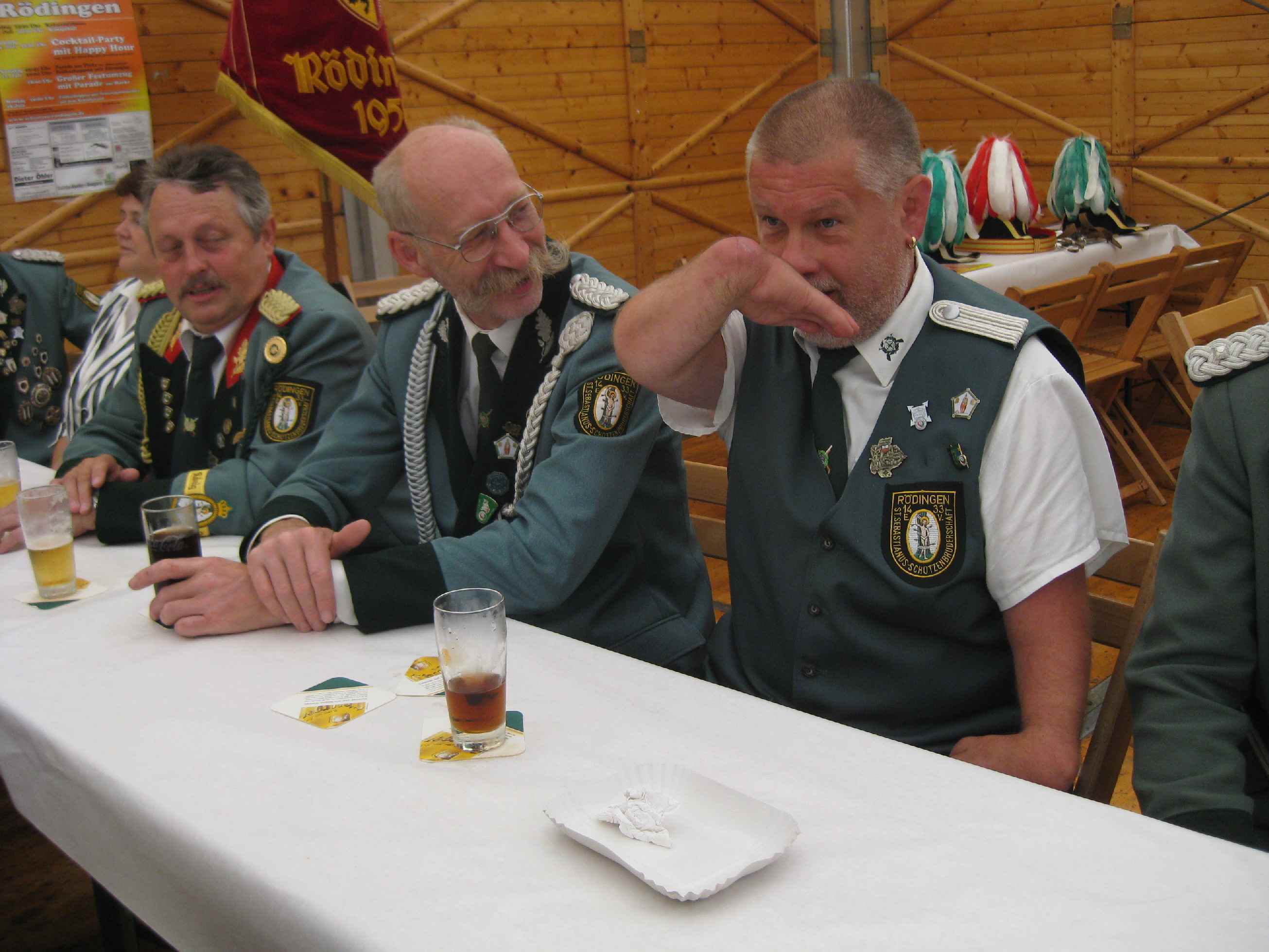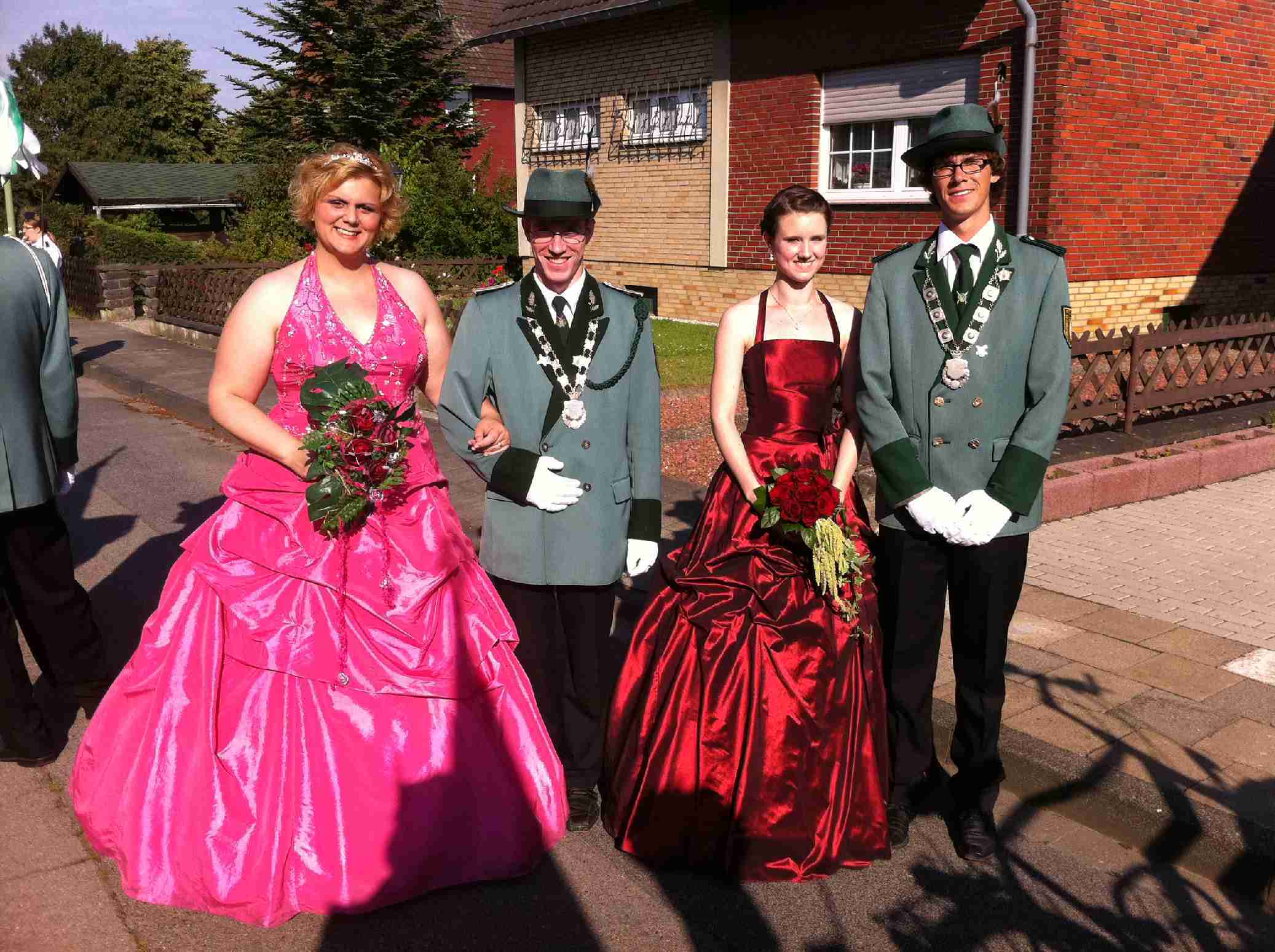 23.06.2011 Fronleichnam mit Familientag und Königsvogelschuss Der Tag begann für die Schützen traditionsgemäß mit der Teilnahme an der Heiligen Fronleichnams-Messe, die in diesem Jahr in der Titzer Kirche St. Cosmas und Damian gefeiert wurde. Anschließend freuten sich alle Besucher und Schützen über das beständige Wetter ohne Regen und genossen den Familientag rund ums Leo-Lange-Haus in Rödingen. Die neue große Riesenrutsche begeisterte die kleinen Kinder und auch so manchen Jugendlichen! Der Grillstand, die Cafeteria und der Eisstand wurden neben den Getränken reichlich genossen und schmeckten sehr gut. Viele nahmen am Schießen der Ortsvereine um den Ortswanderpokal und am Ausschießen der Hans Weber Erinnerungstafel teil. Beim Preisvogelschießen hatte man den Eindruck, dass der eine oder andere es zur Übung nutzte, um beim späteren Majestätsschießen gut auszusehen. Auf dem Schützenfest im Juli werden sie gekrönt und regieren dann für ein Jahr: König Thorsten Hompesch Prinz Stephan Hompesch Schülerprinz Kevin Abels Die Übergabe der Insignien und der kleine musikalische Umzug begleitet vom Jugendmusikzug Fidelio Eisdorf schlossen den offiziellen Teil. Gemütlich gefeiert wurde noch bis in den Abend hinein. Die St. Sebastianus Schützenbruderschaft Rödingen bedankt sich bei allen Gästen.