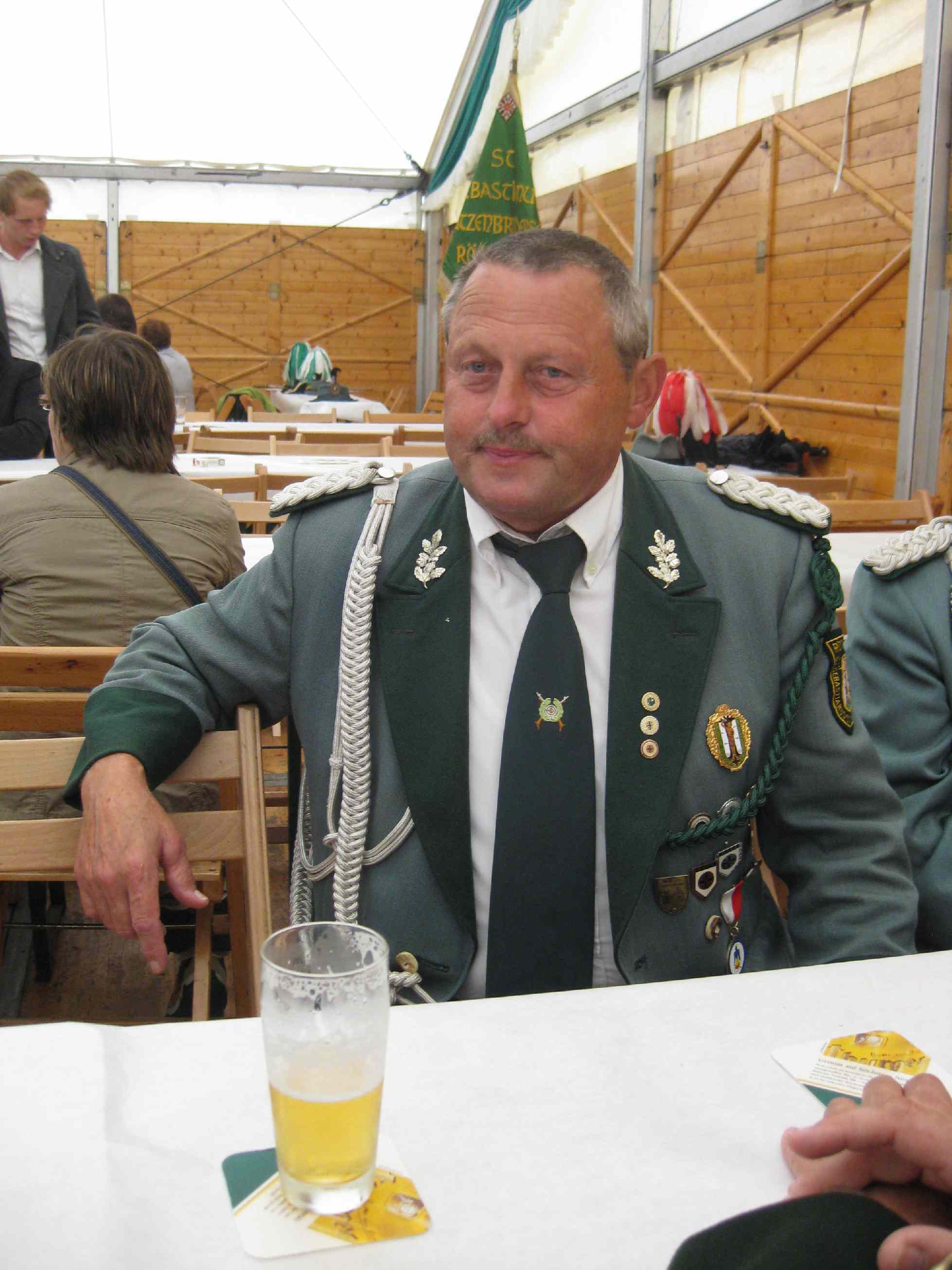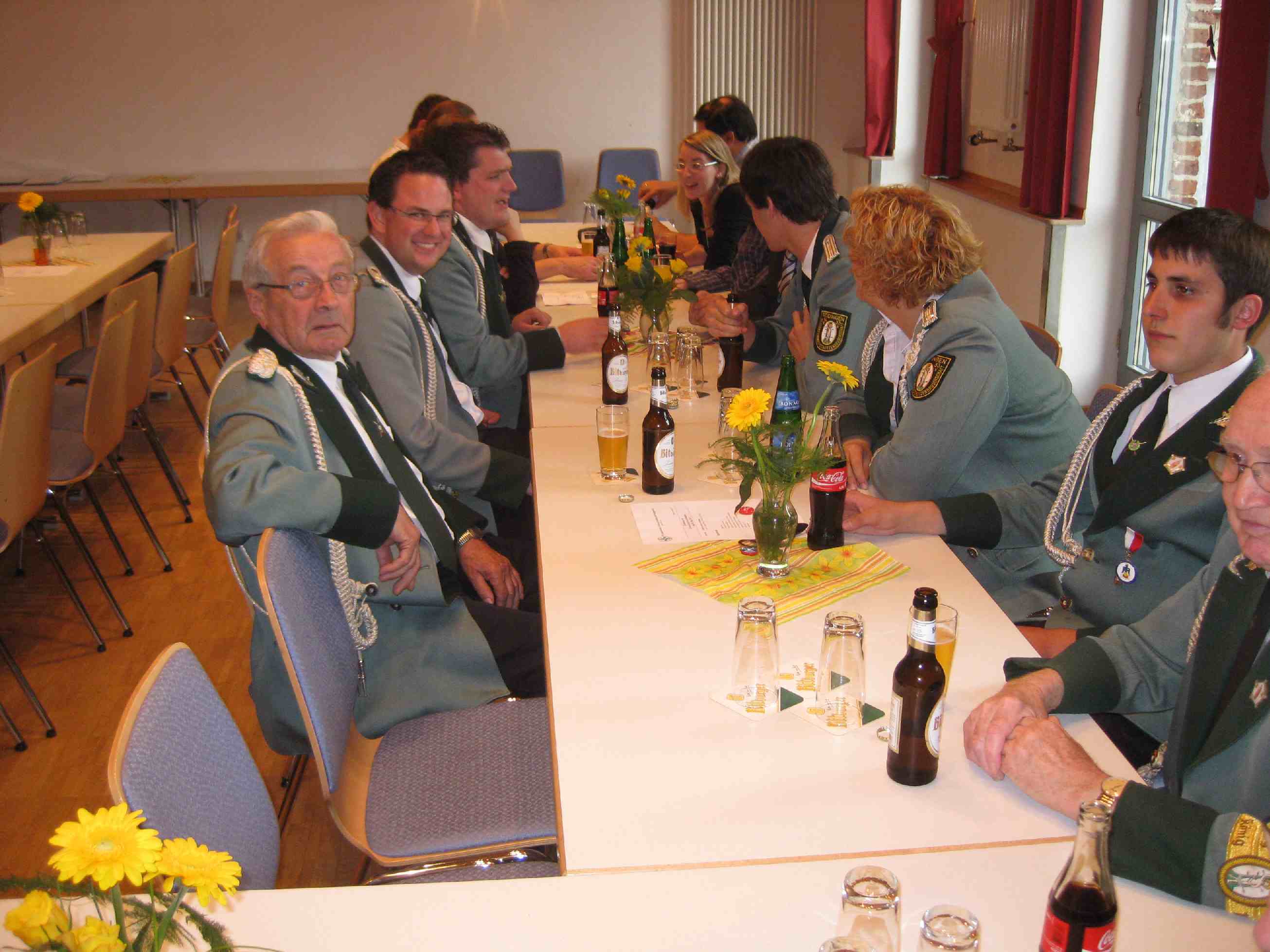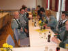 Patronatstag Die uniformierten Schützen traten an und zogen mit der I. und II. Fahne zur Heiligen Messe in die Pfarrkirche St. Kornelius ein. Im Chorraum war die Statue des Heiligen Sebastian von den Schützen aufgestellt worden, die ansonsten am einem Podest im Kirchenraum steht. Die Messe wurde vom Präses Dieter Telorac zur Ehren der Stifters Arnold Blankenheuer und der Eheleute Josefine und Michael Breuer zelebriert. Zum gemeinsamen Frühstück traf man sich im Leo Lange Haus, wo die fleißigen Schützenschwester schon die Tische mit Brötchen, Schwarzbrot, Weck, Wurst und Marmeladen gedeckt hatten. Der erste Brudermeister begrüßte die Anwesenden und hielt einen kurzen Rückblick auf das vergangenen Jahr. Mit dem Hinweis, dass auch eine Bruderbier dazu gehört, eröffnete er das Frühstück. Neben der Stärkung für den Leib, solle das Gespräch und der Austausch eine Stärkung für die Seelen darstellen.