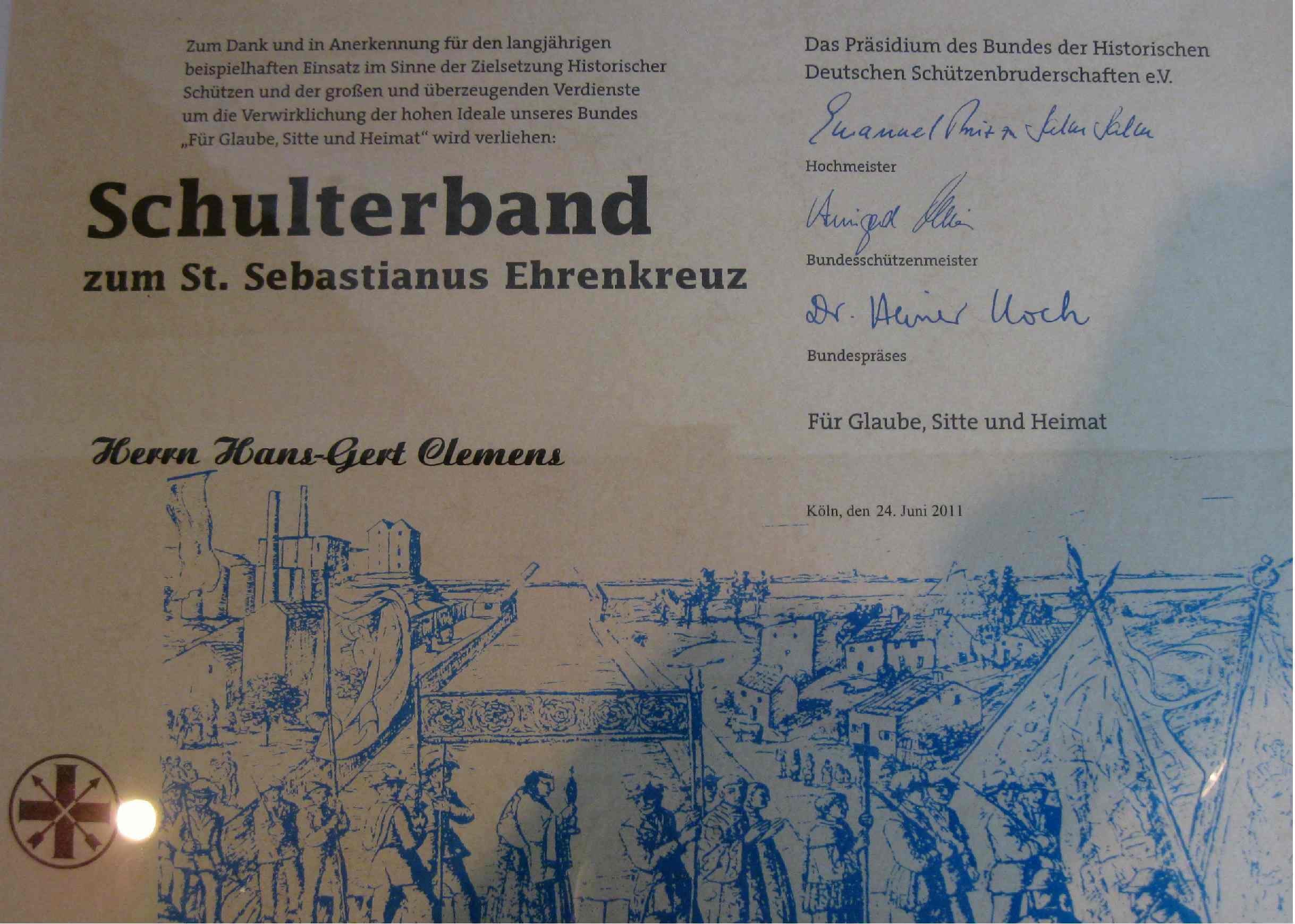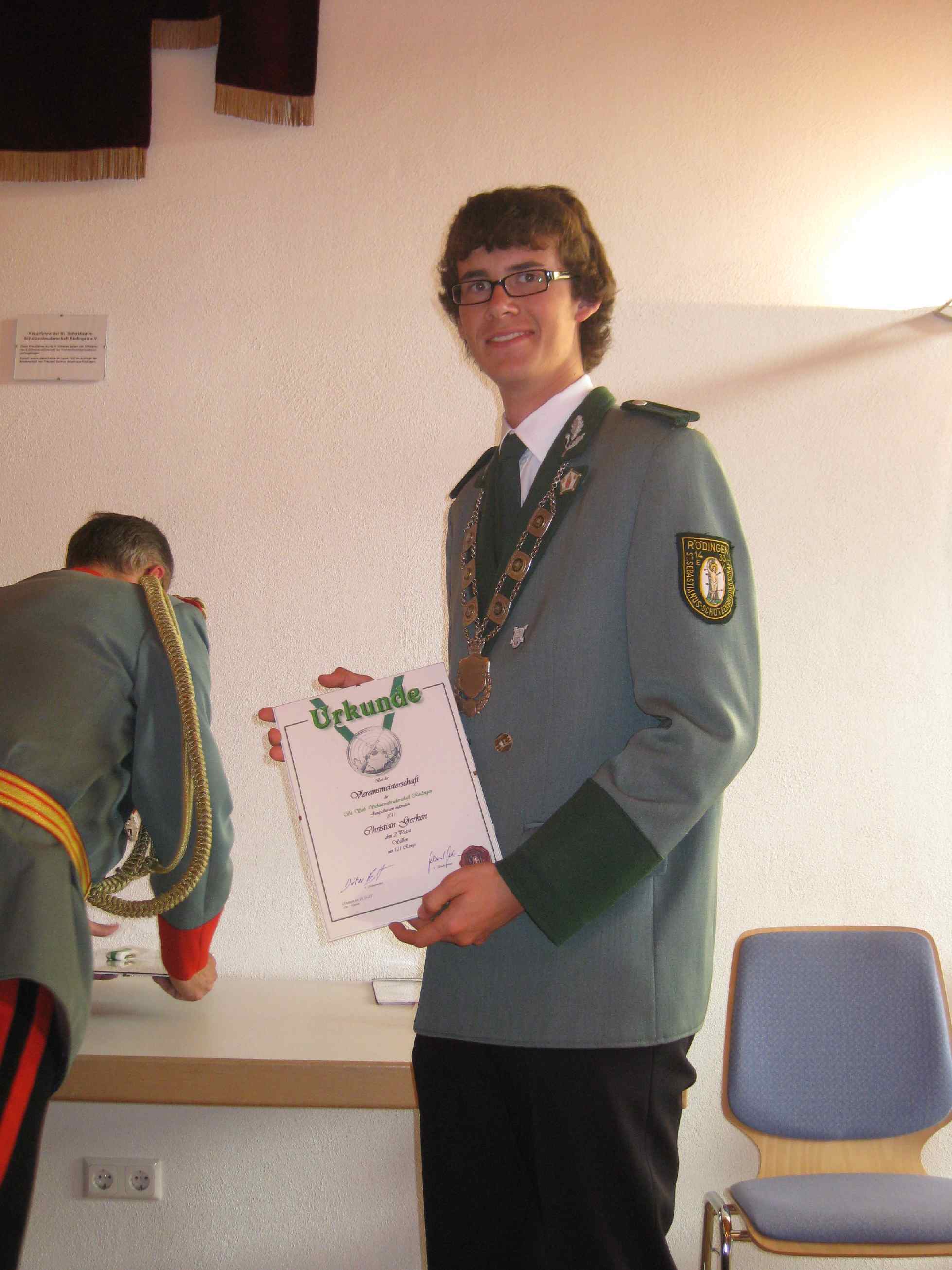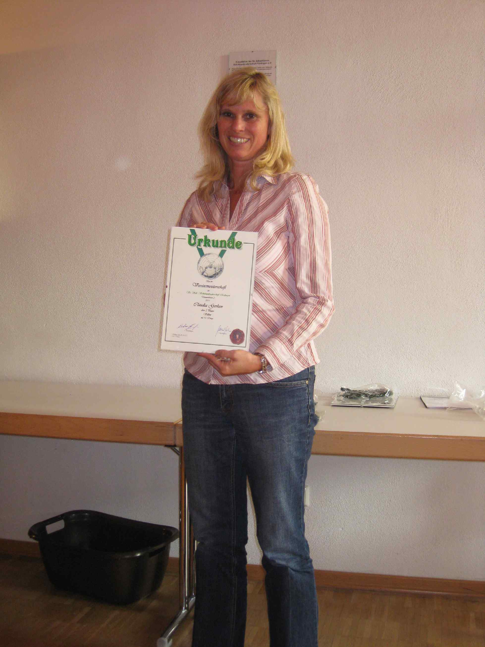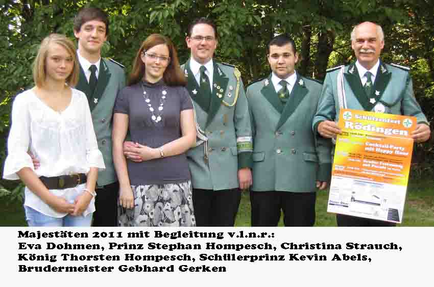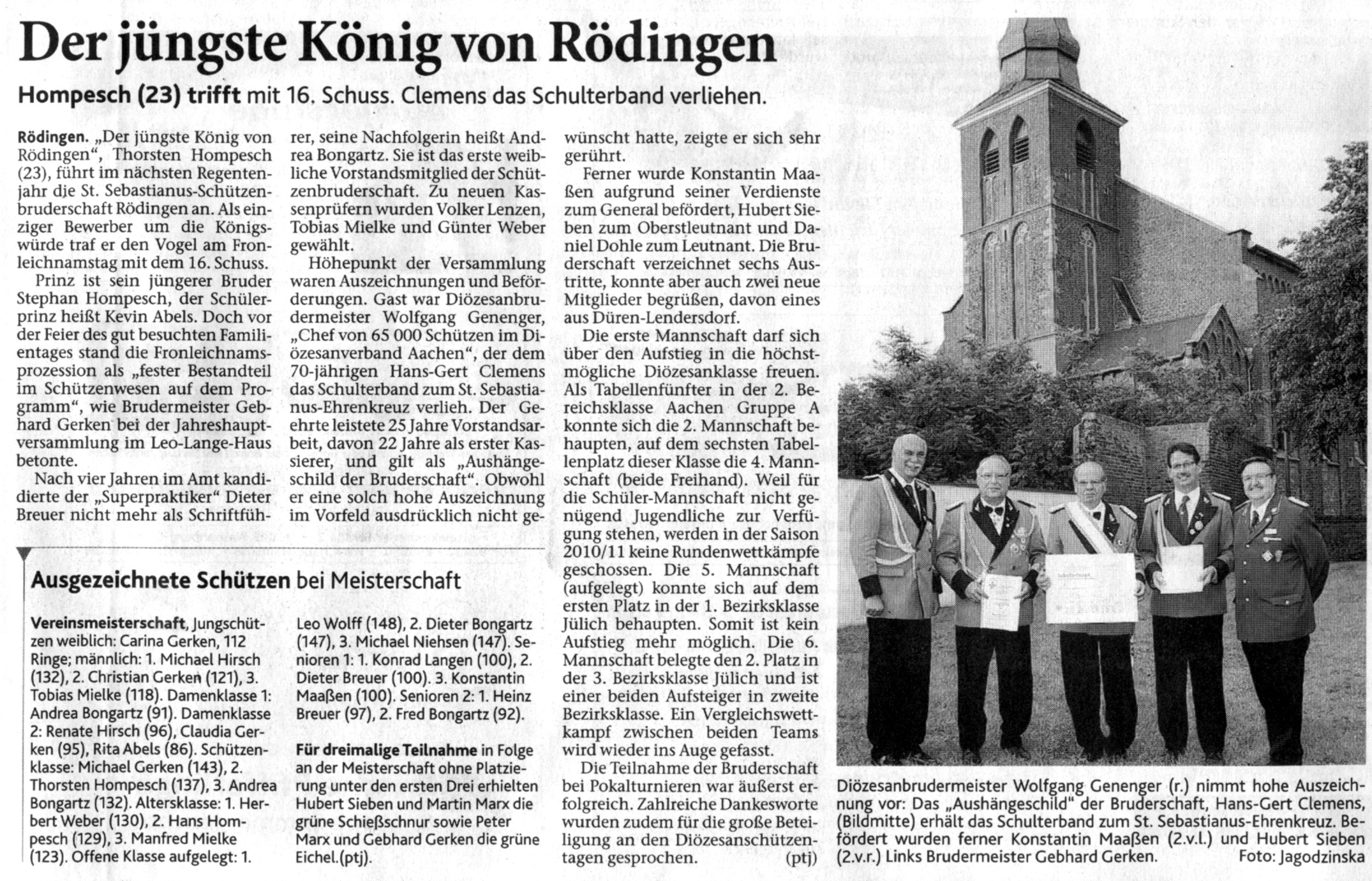 29. Mai 2011: Aachener Diözesanmeisterschaft 2011 der Historischen Deutschen Schützenbruderschaften Klasse: Jugend (m): 27.Platz Gerken, Christian mit 219 Ringen Klasse: Jugend (w): 10.Platz Gerken, Carina mit 240 Ringen Klasse: Schützen 7.Platz Langen, Thomas mit 281 Ringen 22.Platz Gerken, Michael mit 273 Ringen 24.Platz Hompesch, Thorsten mit 273 Ringen 4. Platz in der Mannschaftswertung Klasse: Altersklasse: 19.Platz Hompesch, Hans mit 266 Ringen Klasse: Damen I: 6.Platz Bongartz, Andrea mit 260 Ringen Klasse: Damen II: 29.Platz Hirsch, Renate mit 286 Ringen