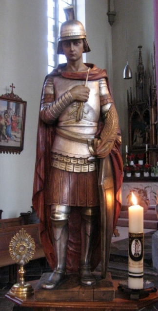Der gemeinsame Höhepunkt des Patronatstages ist die Heilige Messfeier zu Ehren des Namenspatrons Heiliger Sebastianus (siehe) und als Gedenken an den Stifter Arnold Blankenheuer. Präses Dieter Teleorc nahm in seiner Predigt sein eigenes Erleben des Morgens auf. Auf seine Wanderung durch das Feld hörte er die Glocken von St. Kornelius läuten, die ihn ans die Patronatsmesse erinnerten. Ohne dieses vertraute Klingen hätte er weiter seinen Gedanken und der Wanderung gefrönt. Nun galt für ihn zügig und ohne Umwege das Ziel, die Kirche zur Heiligen Messfeier zu erreichen. Nicht aufgeben, sich selbst anspornen und das Ziel verfolgen, lässt sich auf den Alltag eines jeden übertragen. Den geraden Weg gehen, nicht zaudern und zögern, sondern seinem Ziel folgen, so wie es der Heilige Sebastian uns vorgelebt hat. Ein jeder kann und sollte diesem Vorbild ein Stück folgen. Umrahmt von den Messdienern, die alle auch der Schützenbruderschaft angehören, und den Fahnen der Bruderschaft feierte man die Heilige Messe. Zum ersten Mal leuchtete neben der Statue des Heiliger Sebastianus eine Kerze mit dem Wappen der St. Seb. Schützenbruderschaft.