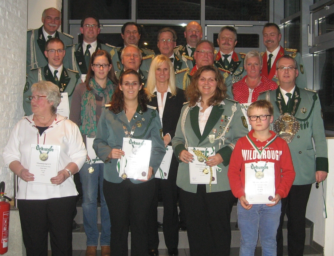 Die Auszeichnungen der Vereinsmeisterschaft 2014 bildeten ein weiteren Höhepunkt der Versammlung und die Geehrten erhielten Urkunden, Plaketten oder Uniformabzeichen.