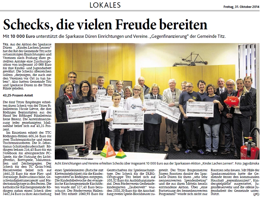 31.10.2014 Kinder.Lachen.Lernen durch eine Spende der Sparkasse Düren