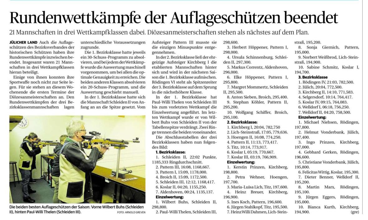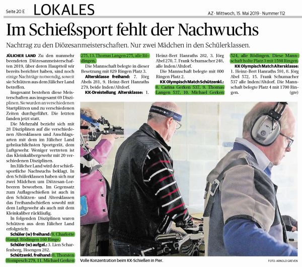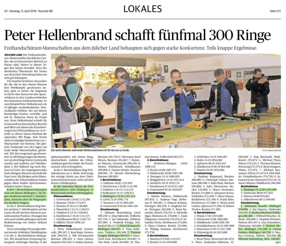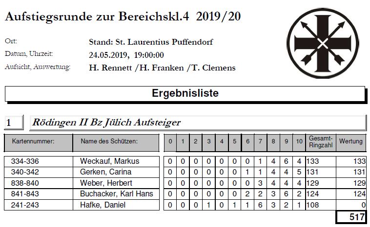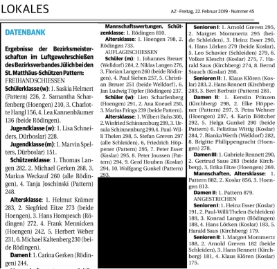 Ergebnisse der Rödinger Schützinnen und Schützen: