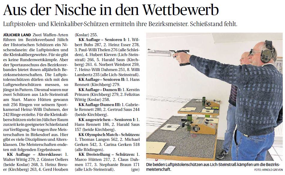 Vereinsmeisterschaften 2019 führte der Schießmeister Konrad Langen durch (siehe