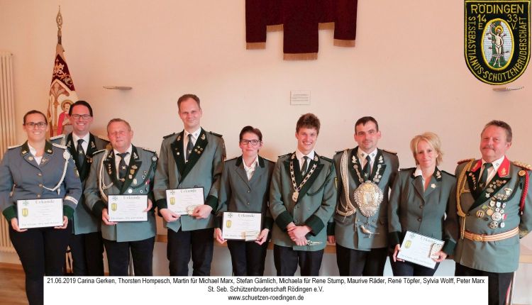 einschließlich der Urkunde an zwei Schützen, die für ihre langjährige