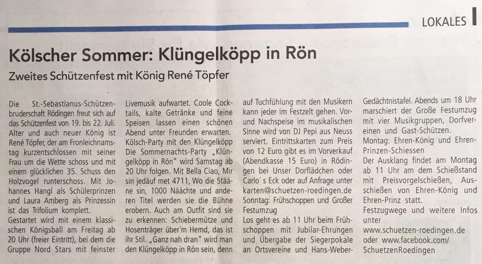super Stimmung mit den Klüngelköpp, schöner Festzug, passendes Wetter. Beim