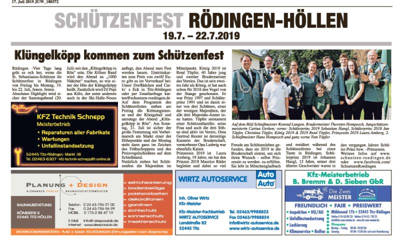 10.06.2019 Pfingstmontag „Clemens Schützenheim“ in Rödingen