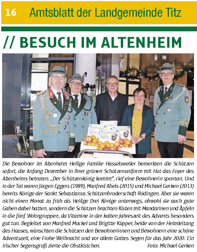04.12.2019 Besuch der Schützen Rödingen im Altenheim