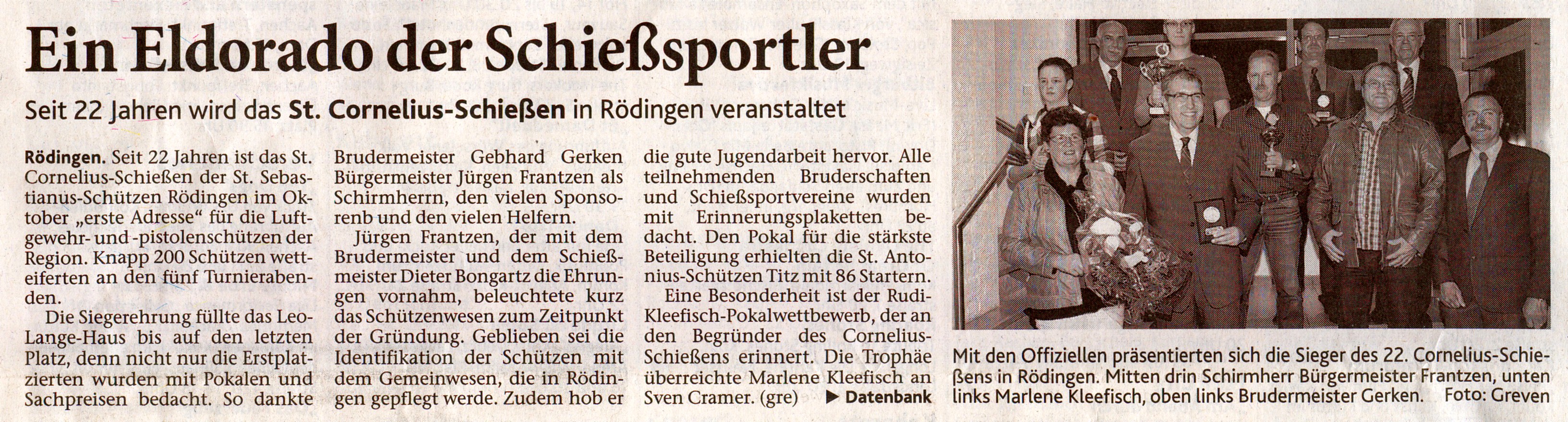 das 22. St. Cornelius-Schießen 2011 überreicht.