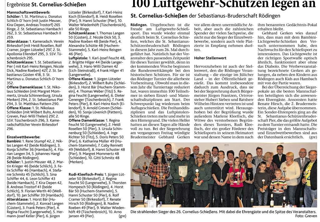 Die Ergebnisse des 26. St. Cornelius-Pokalschießen 2015