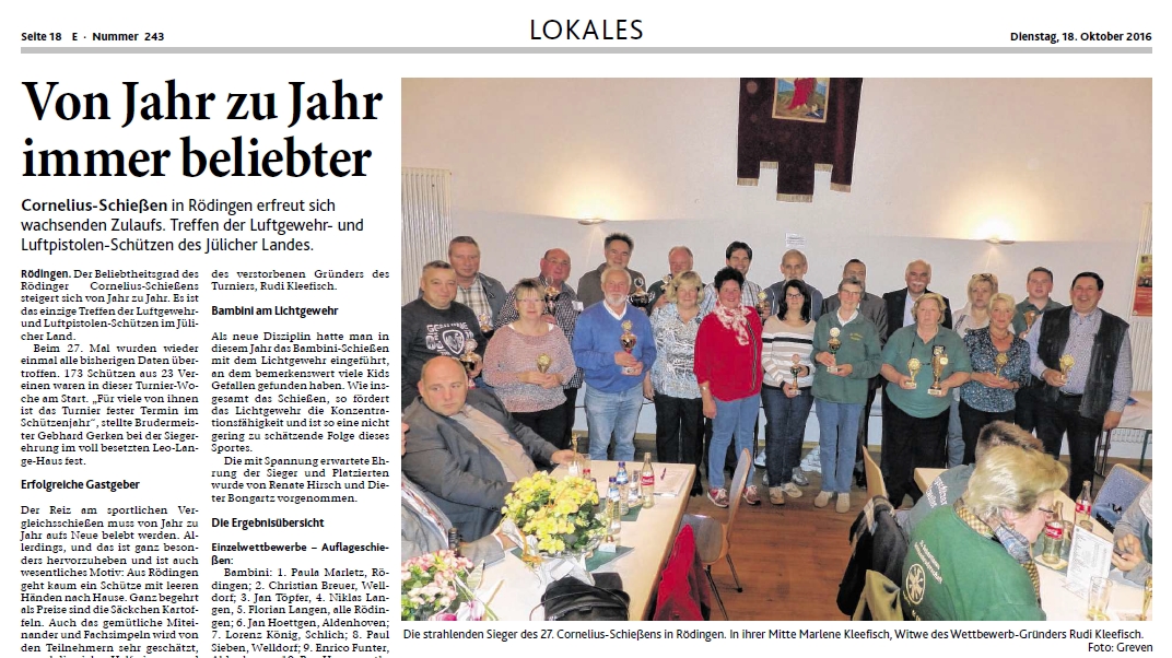 Die Ergebnisse des 27. St. Cornelius-Pokalschießen 2016