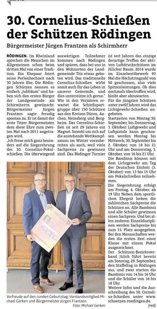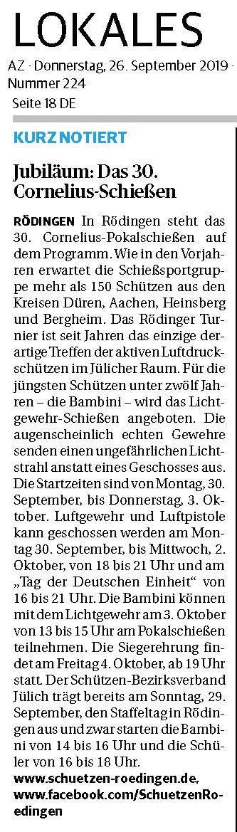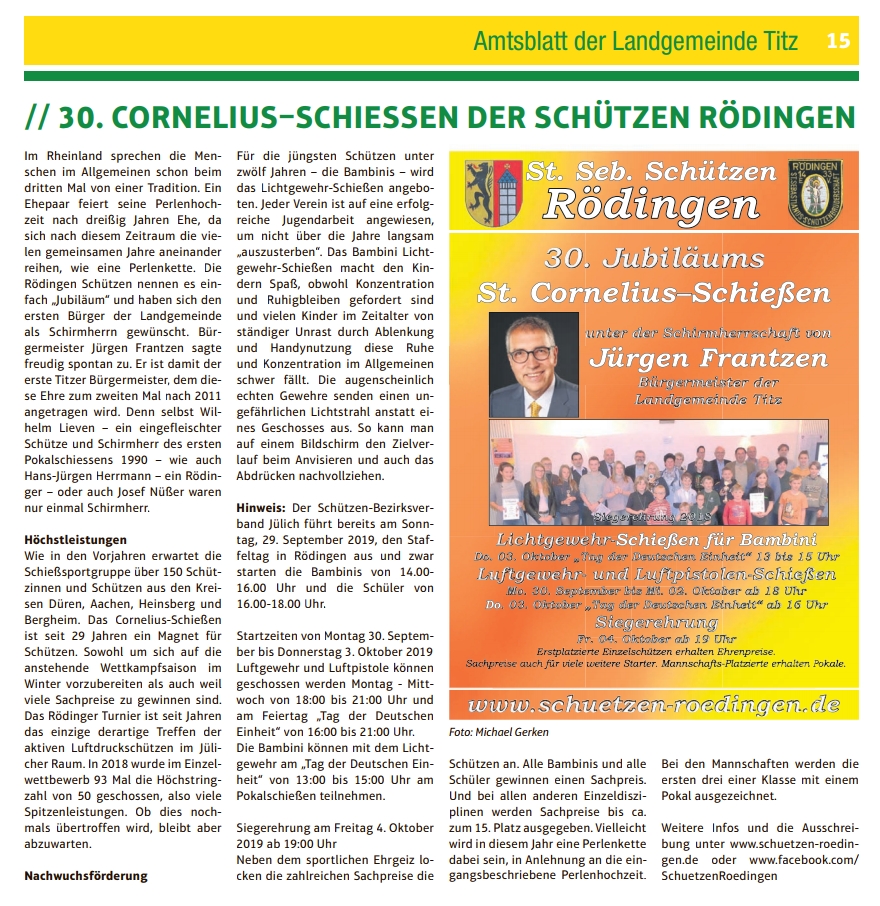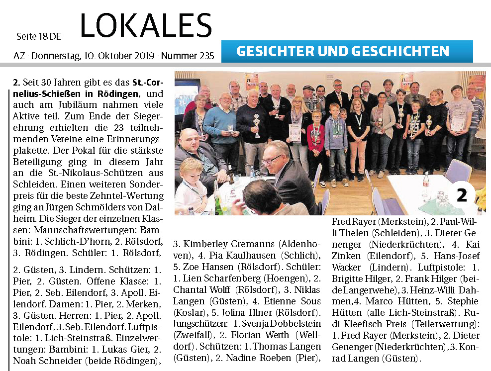 Jubiläum St. Cornelius-Pokalschießen 2019