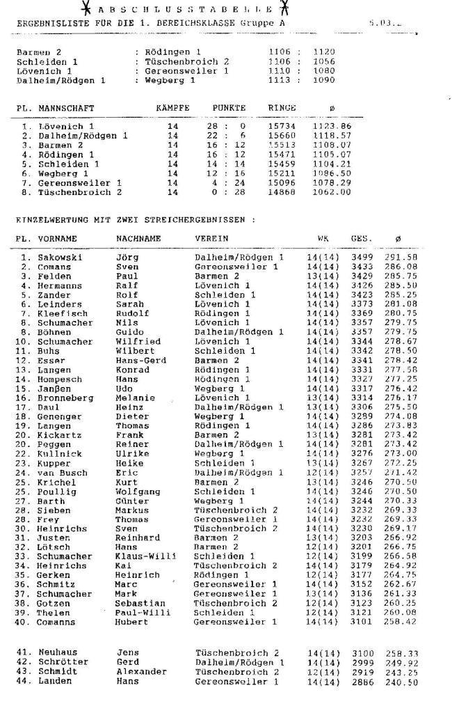 1. Mannschaft in der Saison 2001/2002 in der 1. Bereichklasse A Heinrich Gerken (Mannschaftsführer